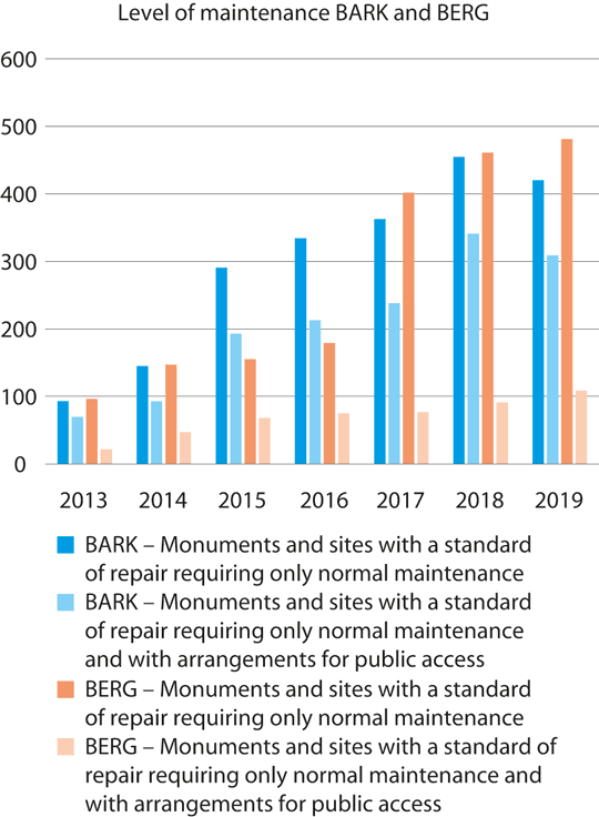 Developments in the conservation programmes Selected archaeological monuments, sites and environments (BARK) and Rock art (BERG) from 2013–2019.