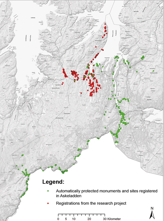 The map shows how registrations from a research project carried out in Vestertana complement the data from Askeladden.