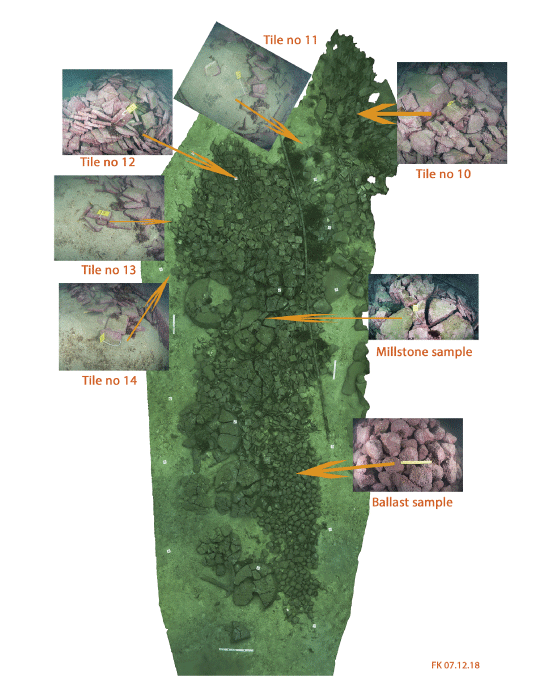 This method helps archaeologists get an overview of the find site. Here the documentation is being used for systematic sampling of the cargo.