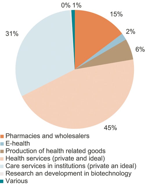The health industry consists of enterprises developing and producing goods and services for use in private and public health and care services, or in prevention, diagnostics, treatment and rehabilitation.
