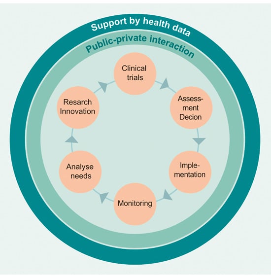 Chapter 8 of the white paper describes how the health and care service and the business sector cooperate on the different stages of the development process when new products, services and work processes are developed and introduced. The chapter discusses the different stages of development and introduction of new products, services and work processes. The Government wants to take steps to improve the interaction between the health and care services and different private and non-profit parties in the health innovation ecosystem. This will take place in the different phases from the needs analysis, through the development process, via procurement to implementation, distribution and evaluation of the product in clinical practice.