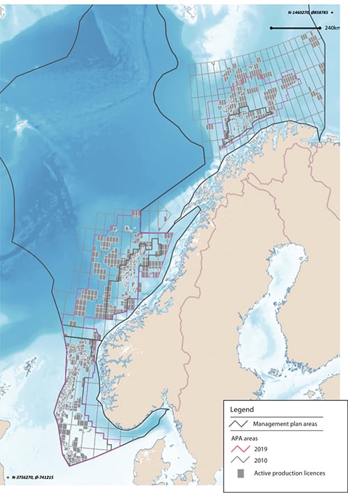 Aquaculture operations in Norway’s internal waters are outside the scope of the management plans, but form part of the whole picture because they depend on good environmental conditions and can have an impact on the marine environment.