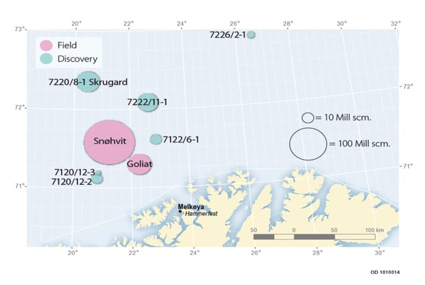 The Goliat oil field was proven in 2000 and development and operation was approved by the authorities in 2009. The plan calls for reinjecting the gas from Goliat, but gas export solutions are also being studied. Based on Goliat’s gas evacuation needs, Gassco has initiated an area study with the objective of mapping future needs and gas transport alternatives from the area. The study will cover both gas export by pipeline and ship, as well as domestic use of gas from the area.