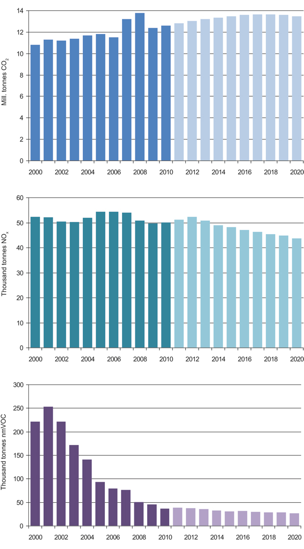NmVOC emissions from the petroleum sector are estimated at about 28 000 tonnes in 2020.