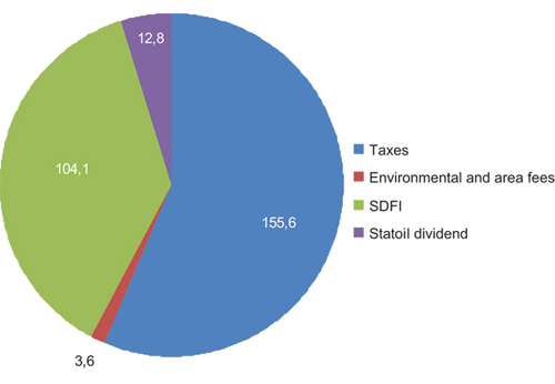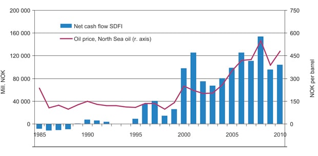 The first years were characterised by large investments and a negative net cash flow. From 1989, the net cash flow has been positive. Up to the end of 2010, SDFI has contributed a total of NOK 1 237 billion to the Treasury.