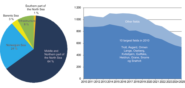 There is currently a high level of activity on the Norwegian Shelf, and large investments are expected in the coming years. SDFI investments totalling about NOK 25 billion are expected in 2011. The largest investments will be for drilling on Troll, Åsgard subsea compression, further development of Ormen Lange, as well as drilling and rig upgrades on Oseberg and Gullfaks. Furthermore, it is expected that investment decisions will be made on some 20 developments with an SDFI ownership over the next two years. The new, smaller fields are complex with regards to development, and are expected to be less profitable than previous, large developments.