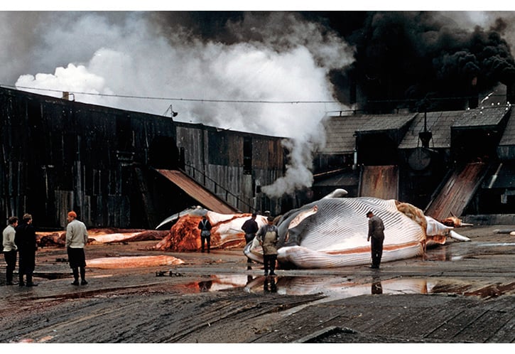 Figure 3.5 A whale on the flensing platform at Husvik, South Georgia, in 1956.