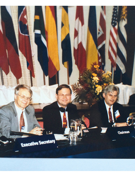 Figure 4.1 At the opening of ATCM XII in Tromsø, May 1998. The meeting chairman, Ambassador Rolf Trolle Andersen, is flanked by the meeting’s executive secretary, Jon Ramberg (left), and its chief rapporteur, Odd Gunnar Skagestad (right). It was the second time the meeting was held in Norway.