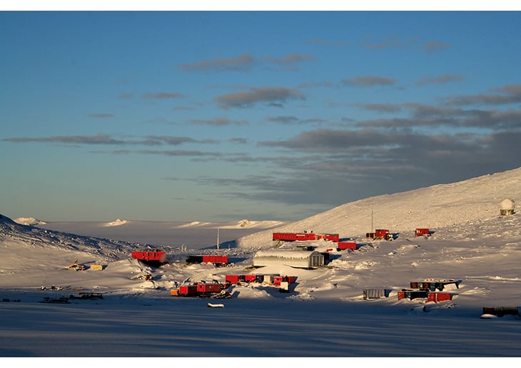 Figure 6.1 The evening sun at Troll, the Norwegian research station in Dronning Maud Land.
