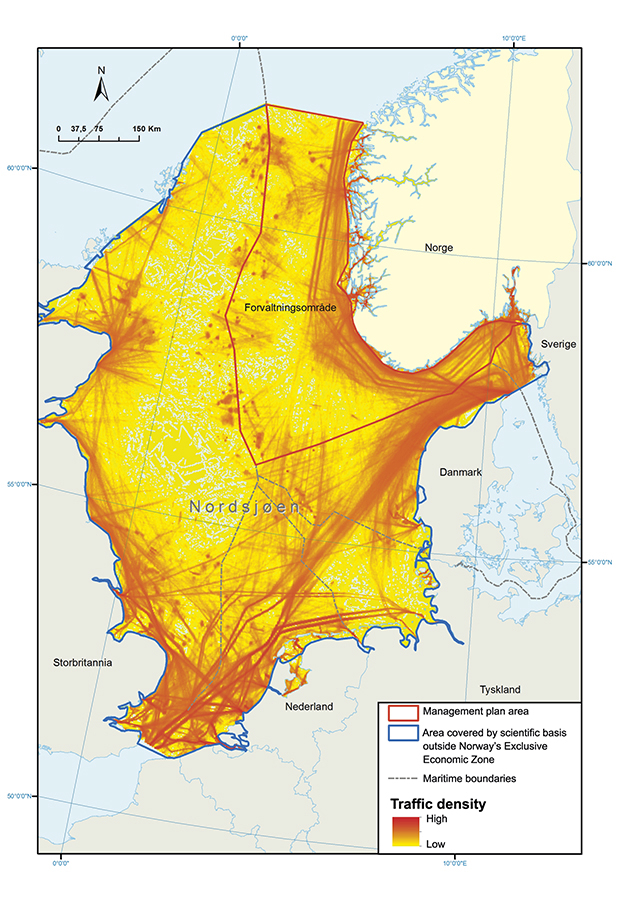 The North Sea–Skagerrak area is one of the most heavily trafficked in the world. There are several important transport routes, for example for vessels in transit along the Norwegian coast to northern waters, traffic to and from the Baltic Sea, and traffic between the major ports in Norway and other North Sea countries. The North Sea and Skagerrak are used by every vessel category and to transport all kinds of cargo.