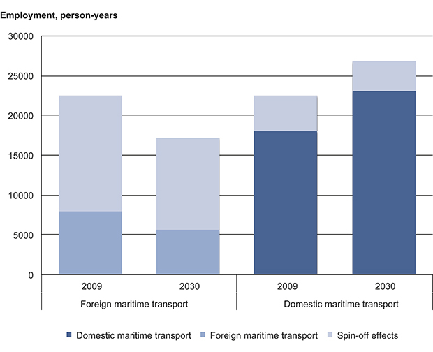 In 2009, petroleum activities in the management plan area generated value added amounting to NOK 310 billion, and provided 18 000 person-years of direct employment and 110 000 person-years of indirect employment. Value added from shipping was NOK 38 billion, with 26 000 person-years of direct employment and 19 000 jobs in related industries. The figures for travel and tourism are from 2007: value added was around NOK 25 billion and total employment was around 58 000 person-years in the North Sea and Skagerrak counties. In 2010, value added from core activities in the seafood industry, in other words fishing, whaling and sealing, fish farming, fish processing and wholesale, was NOK 28 billion, with a production value of NOK 91.2 billion and 24 300 person-years of employment. Offshore renewable energy production may be started in the management plan area in the future.