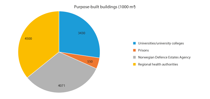 Figure 8.1 Area of purpose-built buildings belonging to regional health authorities, universities and university colleges, prisons and the Norwegian Defence Estates Agency, in square metres