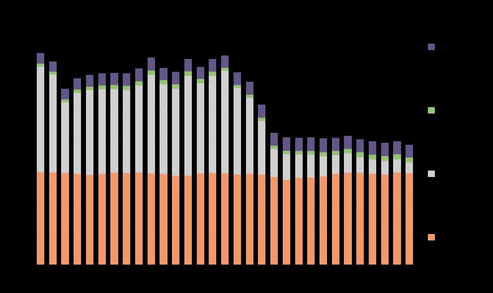 Year | Stationary combustion | Oil and gas industry | Industrial processes | Road traffic | Coastal traffic and fishing | Other mobile sources | Other sources | Total |