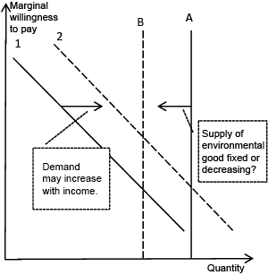 In Chart 4.3, a change in demand will represent a horizontal shift, whilst a change in the willingness to pay will be vertical.