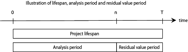 Figure 6.1 Illustration of lifespan, analysis period and residual value period1