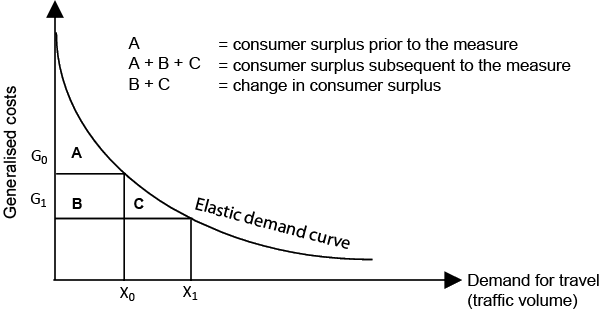 Part of the value associated with increased labour supply is captured in a well-specified ordinary cost-benefit analysis of the transportation market. Since the transport users who increase their labour supply will make their decisions on the basis of wages after tax resulting from such increased labour supply, this effect will be captured as the change in the consumer surplus of the transport users.