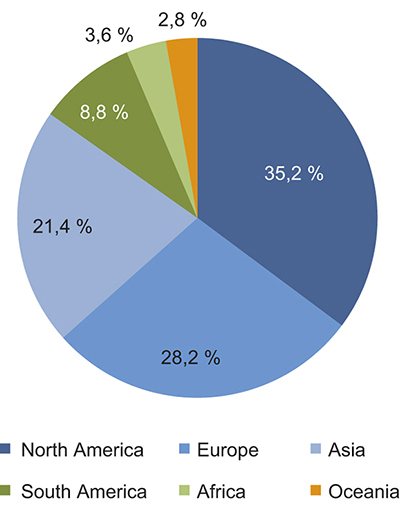 Data from Coursera shows that course participants come from all over the world, but that the majority are located in North America, Europe and Asia, cf. Figure 7.2. Corresponding data from edX and Canvas largely support this impression.