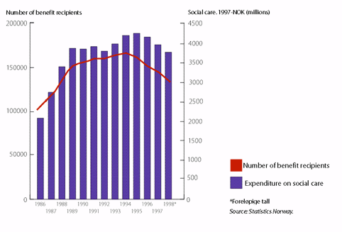 | Figure 2Expenditure on social care (1997-Nkr (millions)) and the number of benefit recipients |