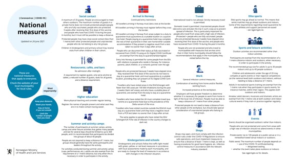 The Ministry of Foreign Affairs still advises against all non-essential travel to countries outside the EEA/Schengen, the UK and a small number of selected third countries (purple countries).