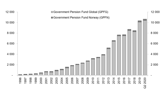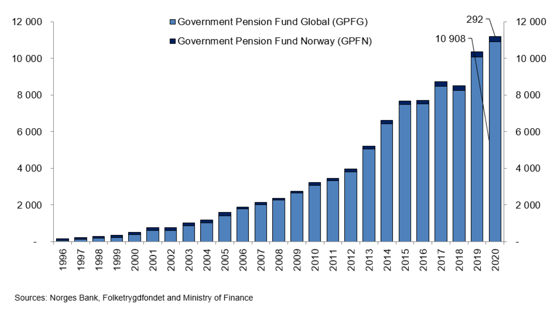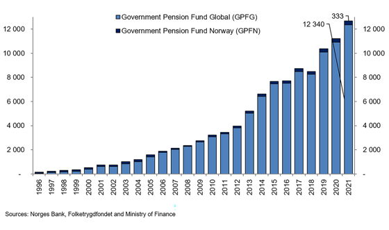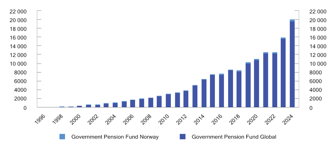 Government Pension Fund market value from 1996 to 2024. NOK billion