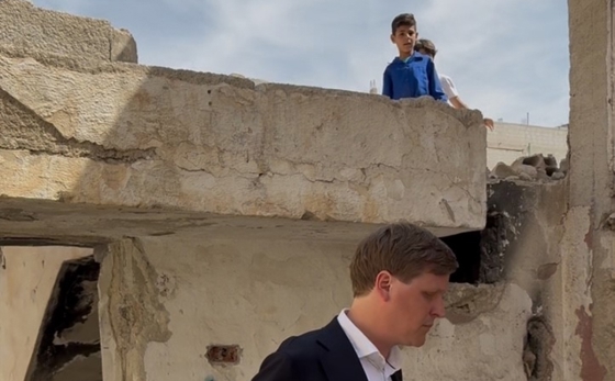 Ruin etter ruin. Hele nabolag i området Darayya, utenfor Syrias hovedstad Damaskus, er borte. Darayya var spesielt rammet under den syriske borgerkrigen. Her møtte utviklingsminister Åsmund Aukrust en familie som har fått hjelp fra den norske organisasjonen Flyktninghjelpen, til å reparere huset sitt.
