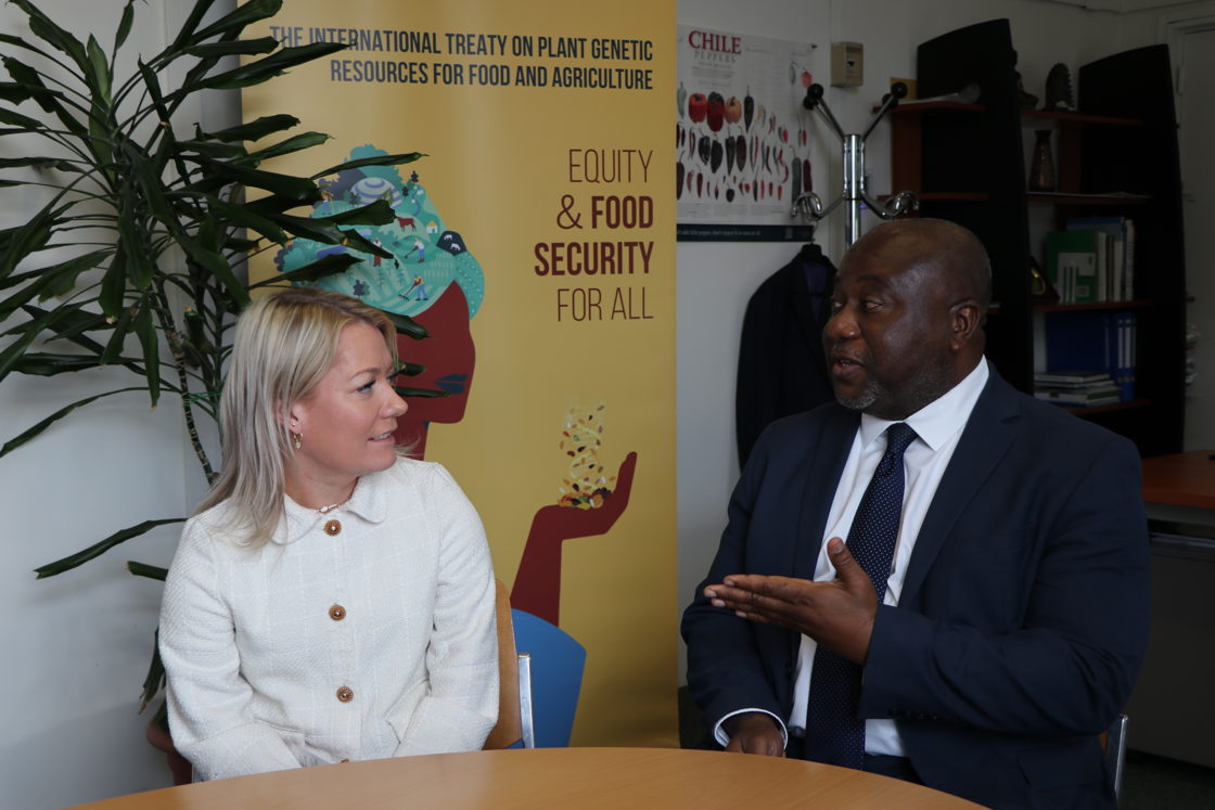 Landbruks- og matminister Sandra Borch annonserte beløpet under møte med Kent Nnandozie som er sekretariatsleder for Plantetraktaten (FAO-avtale for internasjonalt samarbeid om såfrømangfoldet).