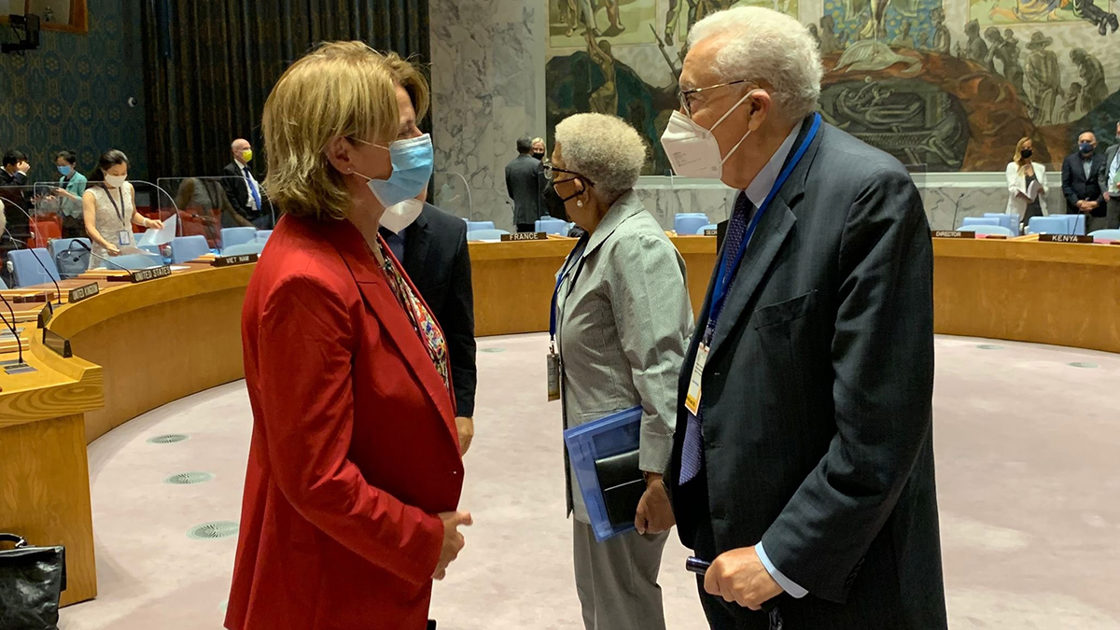 Tirsdag 7. september ble det avholdt åpen orientering med deltakelse fra organisasjonen The Elders. Møtet var et av det irske presidentskapets signaturarrangementer i september. Mary Robinson (leder av the Elders) innledet, sammen med Lakhdar Brahimi. I tillegg deltok Ernesto Zedillo og Ellen Johnson Sirleaf i møtet. Robinson la i sitt innlegg vekt på blant annet rådets overordnede ansvar for fred og sikkerhet, inkludert forebyggende innsats før konflikter bryter ut, behovet for å etablere en bedre multilateral pandemiberedskap, trusselen fra klimaendringer, samt situasjonen i Etiopia/Tigray, Myanmar og Israel-Palestina. Brahimi fokuserte i hovedsak på Afghanistan i sitt innlegg. Ambassadør Mona Juul trakk frem Sikkerhetsrådets mandat til å forhindre og forebygge konflikt, og understreket viktigheten av inkluderende fredsprosesser i det norske innlegget.