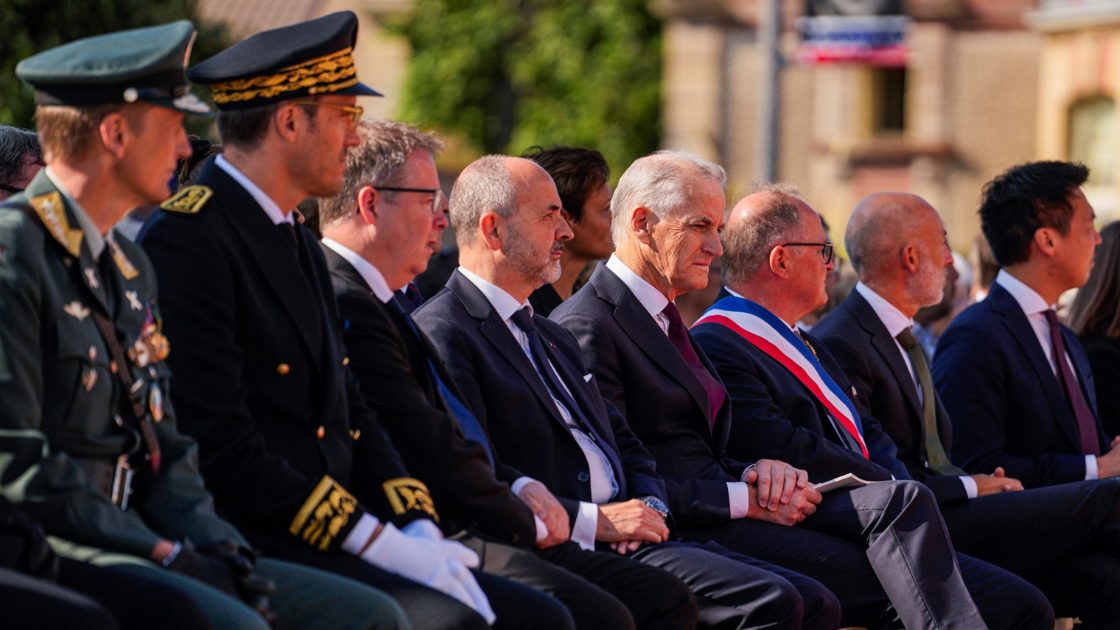 – De som kjempet her, kjempet også for vår frihet og vår rett til å leve i frie og demokratiske land. Ukrainske soldater kjemper i dag for de samme verdiene. Markeringen her i Normandie skjer med et svært alvorlig sikkerhetspolitisk bakteppe, sier Støre.