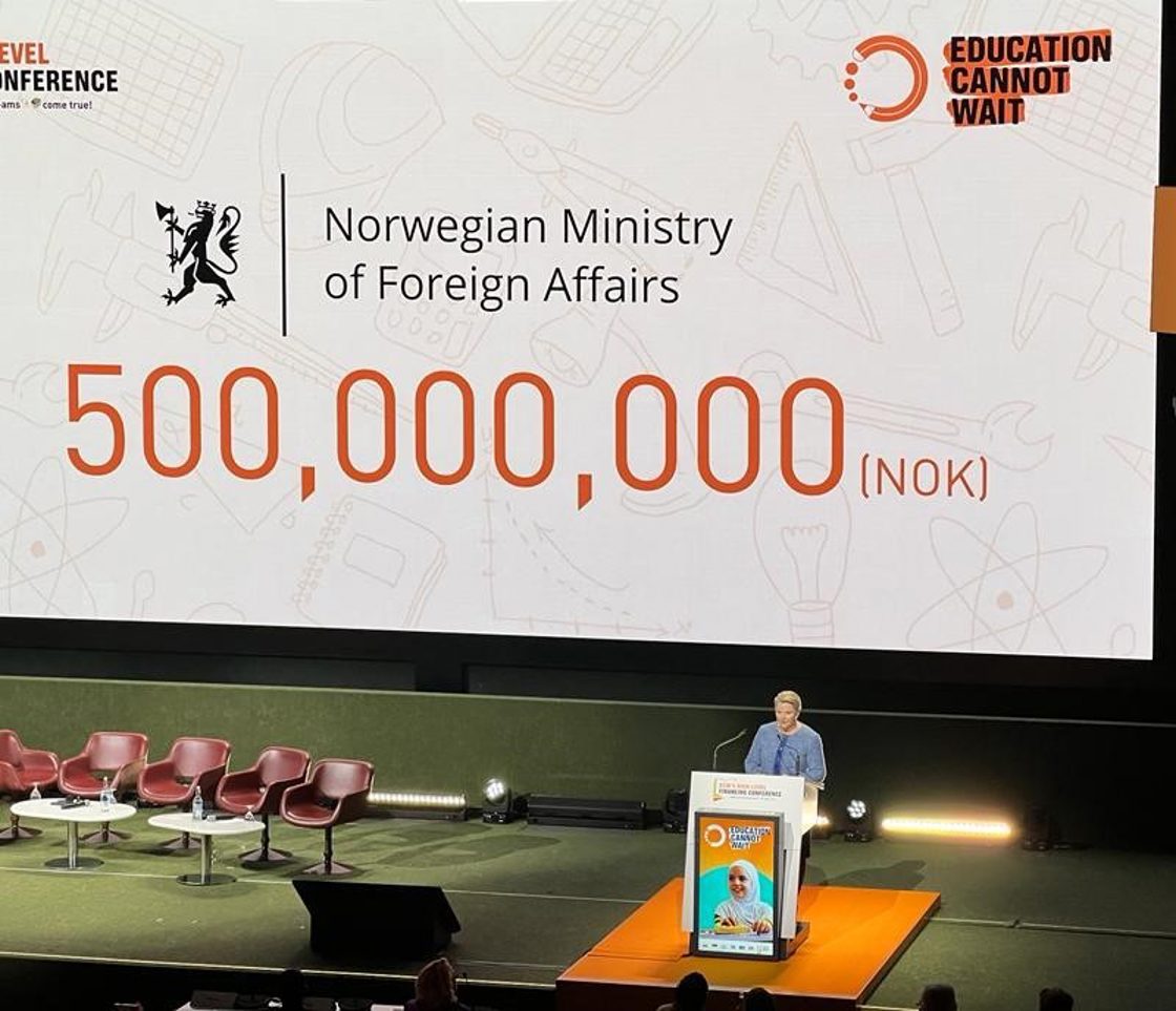 Annonserte bidrag på en halv milliard kroner til FNs fond for utdanning i krise og konflikt