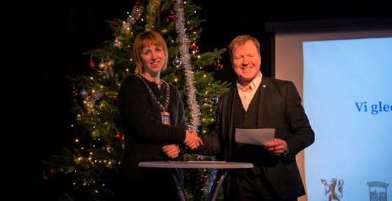 varaordfører Mona Berger og kommunal- og distriktsminister Sigbjørn Gjelsvik signerte tirsdag 13. desember intensjonsavtalen om de to nye områdesatsingene i bydelene Lademoen og Tempe-Sorgenfri i Trondheim.