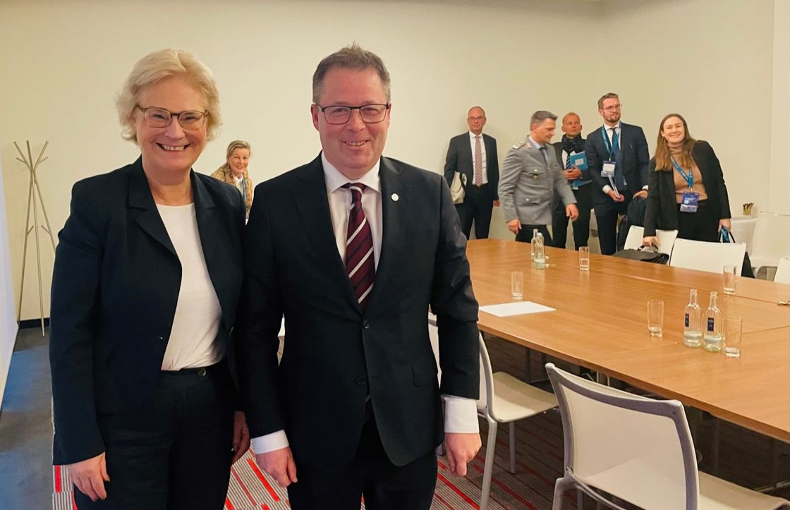 I et møte med den tyske forsvarsministeren Christine Lambrecht diskuterte Gram blant annet videre forsvarssamarbeid med Tyskland.