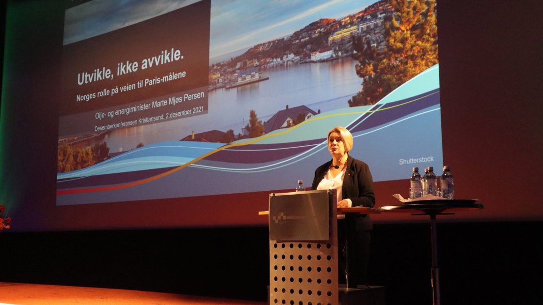 Olje- og energiminister Marte Mjøs Persen holdt dette innlegget på Desemberkonferansen i Kristiansund 2. desember 2021. Konferansen er en av olje- og energibransjens viktigste møteplasser, særlig i Møre og Romsdal, og arrangeres av Kristiansund og Nordmøre Næringsforum.