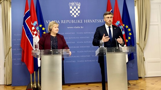 - Kroatia er en viktig samarbeidspartner, både gjennom NATO og gjennom EØS-avtalen. Med sitt EU-formannskap har de tydelige ambisjoner, også for reformarbeidet på Vest-Balkan. Her spiller Kroatia en nøkkelrolle, sier Erna Solberg.