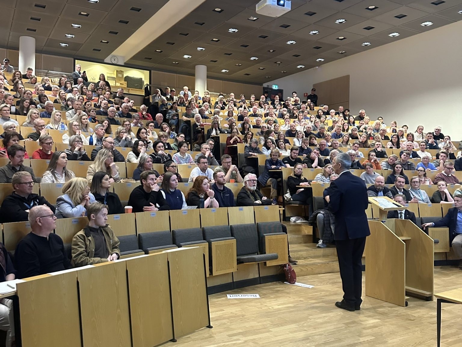 På Høgskulen Vestlandet Campus Haugesund foreleste han om utviklingen i verdenshandelen og de økonomiske utfordringene Norge står overfor de kommende årene. Kamp om arbeidskraften er et spesielt relevant tema for studenter som forbereder seg på arbeidslivet.