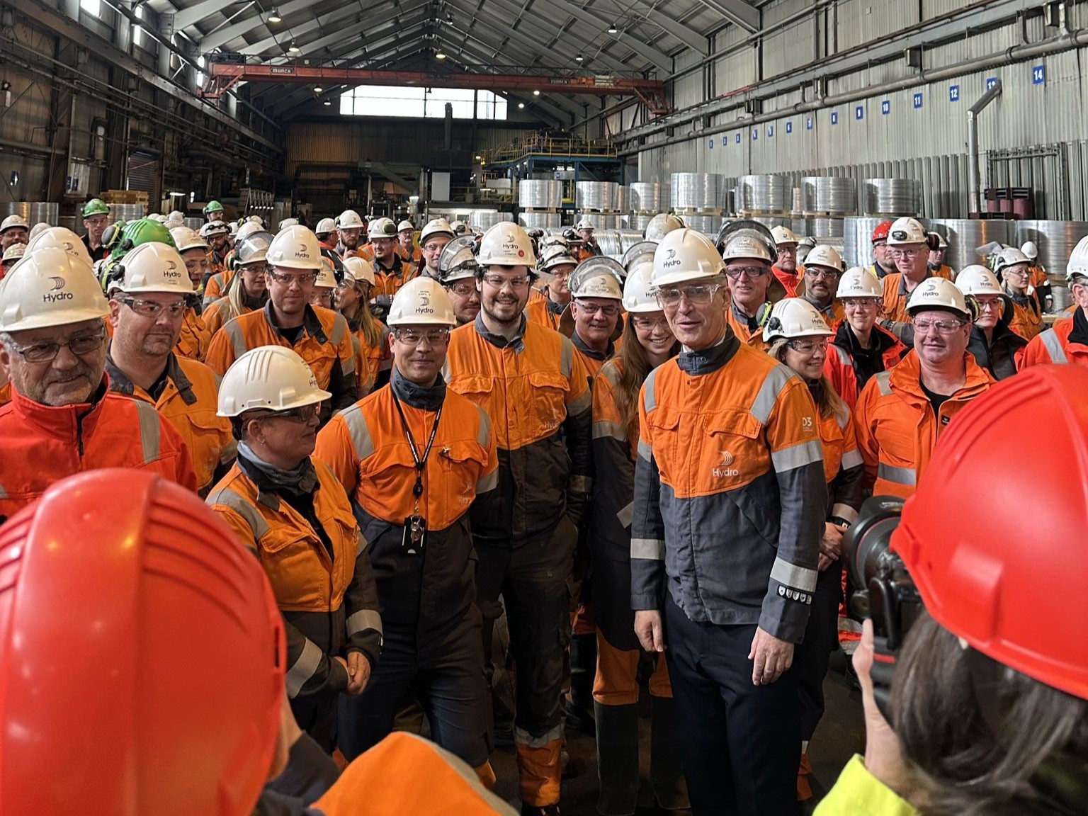På Hydro Karmøy deltok finansministeren på et allmøte med de ansatte for å markere Hydros beslutning om å investere i et nytt trådstøperi.