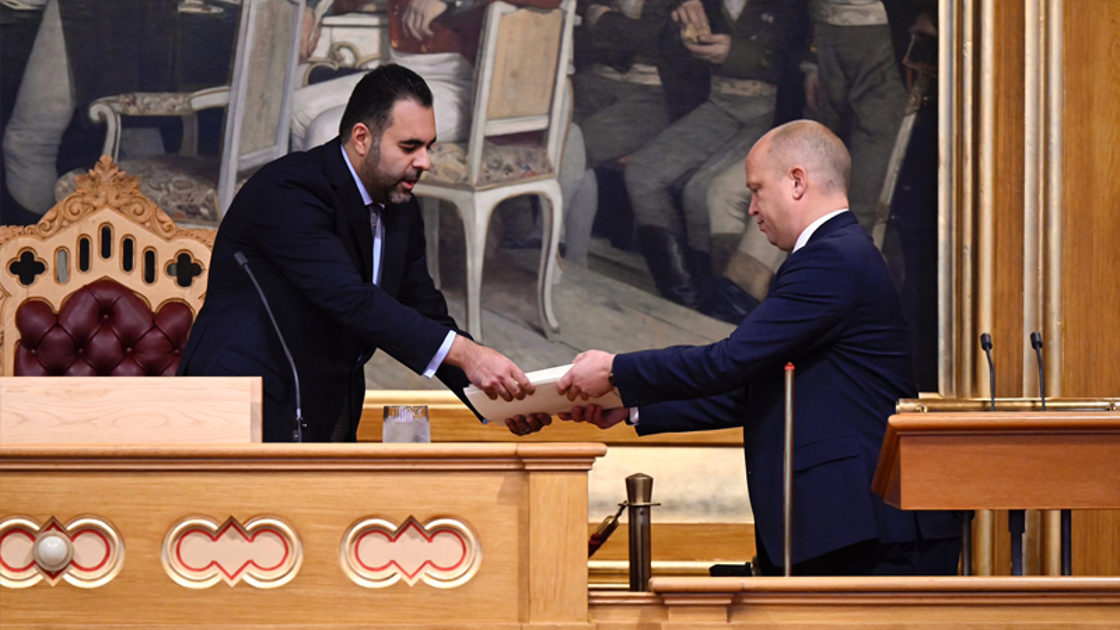 Talen overføres direkte på Stortingets Nett-TV
