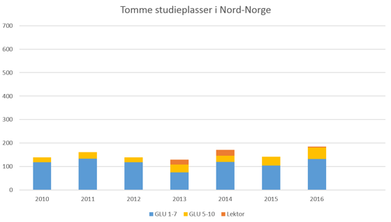 De siste åtte årene har mellom 300 og 600 studieplasser på landets lærerutdanninger stått tomme. I samme periode har antallet studieplasser ved lærerutdanningene økt kraftig - fra om lag 3000 studieplasser i 2008 til om lag 4000 studieplasser i år.