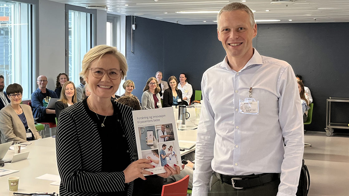Helse- og omsorgsminister Ingvild Kjerkol mottok fredag 26. mai en rapport fra de regionale helseforetakene med nasjonale nøkkeltall og en omtale av de beste forsknings- og innovasjonsprosjektene i sykehusene i 2022. Dette er den tiende rapporten i sitt slag.