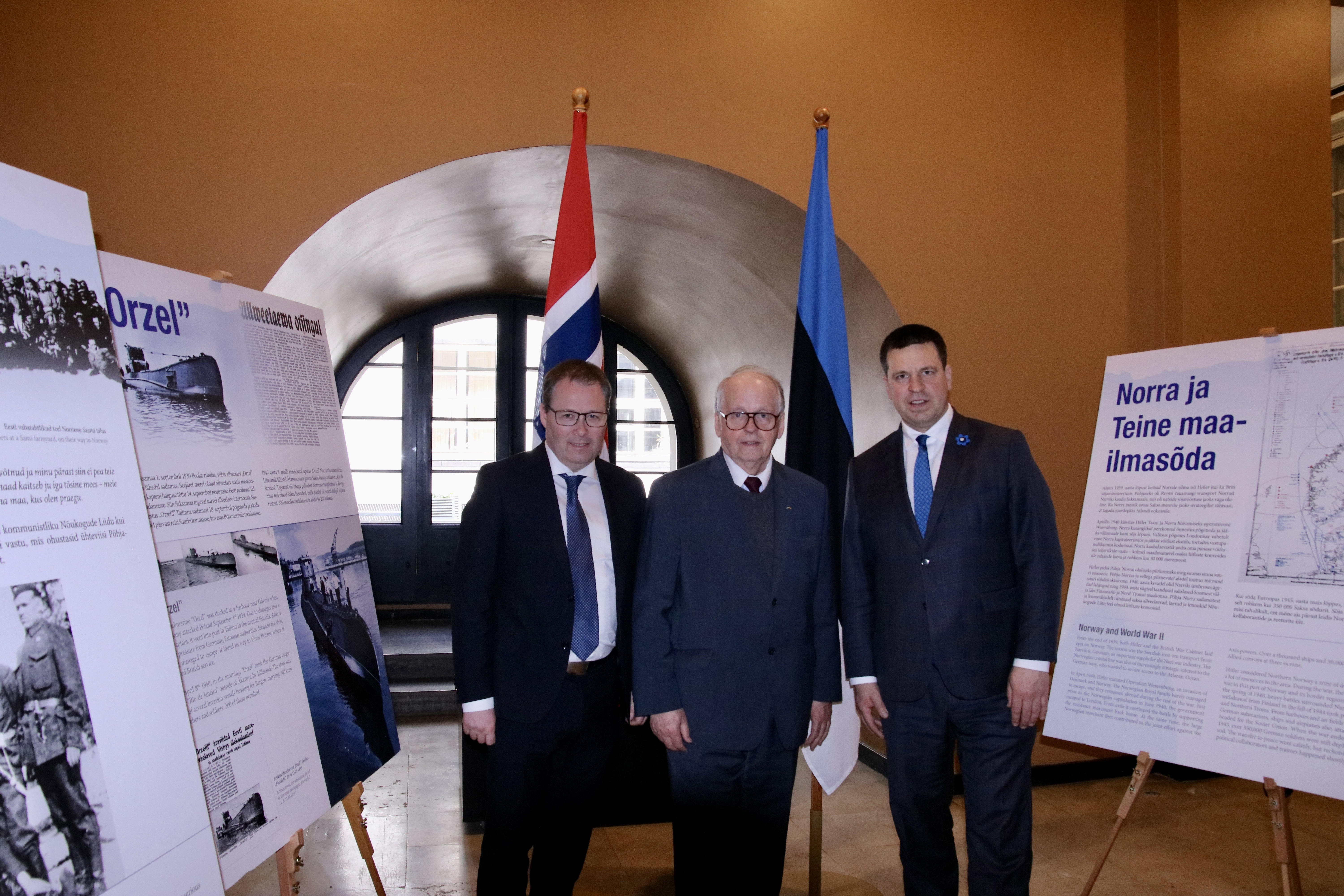Gram åpnet en utstilling i det estiske parlamentet, som viser estiske frivillige som deltok i kampene i Narvik under andre verdenskrig.