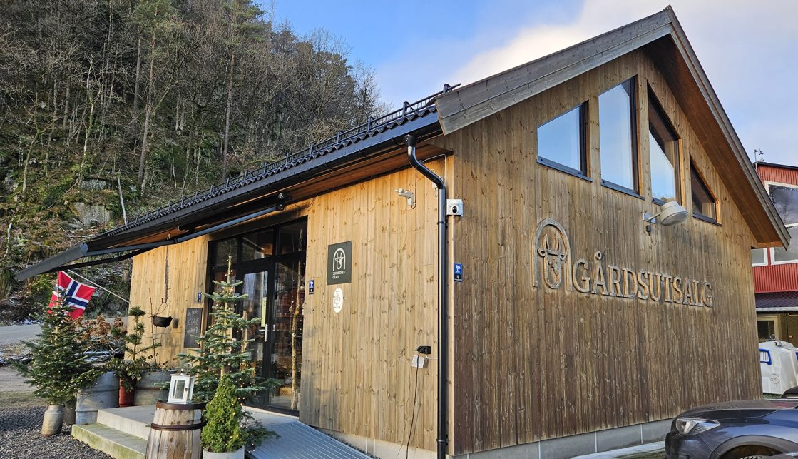 I gårdsbutikken selges kjøtt fra gården og holdbare varer fra 35 andre leverandører. Distribusjon er det vanskelige for omsetningen av lokal mat. Til gårdsbutikken hentes det varer ukentlig på en fast runde lokalt, og av og til blir det hentet varer fra Grimstad og Kristiansand. Det kommer også varer fra Østlandet. I butikken er det lagt opp til selvbetjening.
