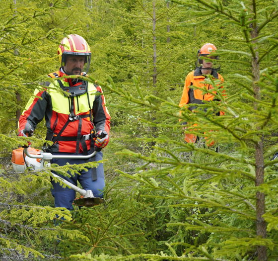 Helge Strætkvern fra Solør vgs. og Torgrim Fjellstad fra Glommen Mjøsen skog informerte om rekrutteringsbehovet i skogbruket og ungskogpleie, både hvorfor vi gjør det og det store behovet for ungskopleie som er i de norske skoger. Etter kort, men god opplæring i bruk av ryddesag fra elever ved Solør vgs. gikk Kronprinsen i gang med gjennomføring av ungskopleie.