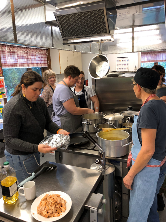 Første samling i prosjektet var i Snåsa 3. og 4.oktober. Faglærere og kantineansatte fra Røyrvik skole, Åarjel-saemiej skuvle, Snåsa skole og Snåsa Montessoriskole var samlet for å få inspirasjon og påfyll av både teoretisk og praktisk art. Samlingen startet med workshop ved Saemien Sijte og temaet var årshjulet og de 8 samiske årstidene. Deltakerne fikk også høre om det svenske skolemåltidet og hvordan samisk mat er et krav i skolen i svenske samiske forvaltningskommuner. Dagen etter var det lagt opp til praktisk matlaging. Aktørene var samlet ved Åarjel-saemiej skuvle og samiske tradisjonsretter og et typisk svensk skolemåltid sto på menyen. Det planlegges ei tilsvarende samling på Røros senere i oktober.