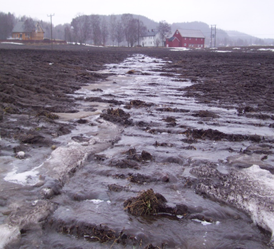 Mye overflatevann etter regnskyll og flom har gitt at mer vann må dreneres bort på overflata og ikke gjennom jordprofilet. Bruk av profilering og åpne grøfter i og rundt arealene er tatt i bruk mer enn tidligere. Også tiltak i bekkeløp med flomhinder og dammer for å redusere vannhastigheten, kan være smarte tiltak. Vi merker oss at arealforvaltningen i kommunene har denne helheten med seg i sin saksbehandling der store tette arealer krever gode løsninger for avløp av overflatevann, liksom i landbruket.