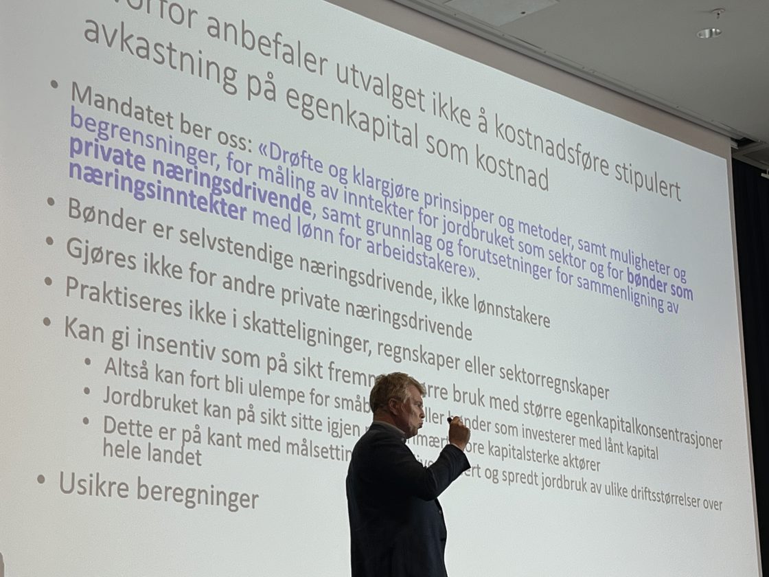 Ola Grytten var invitert til å snakke om inntekstmåling i jordbruket og fortelle om innholdet i Grytten-rapporten.