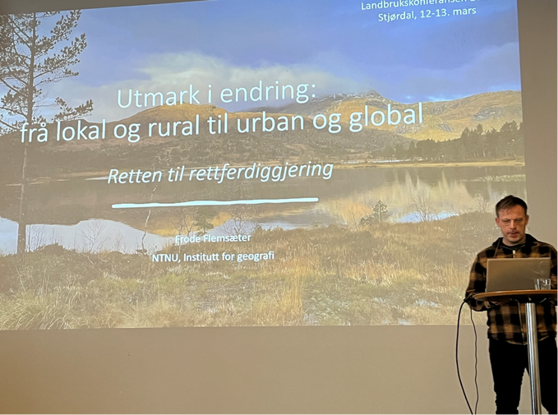 – Dette handlar om retten til å rettferdiggjøre seg og sine interesser i utmarka i ei tid der samtaler om utmarka i stadig større grad dreier fra retten til en definert bruk mot retten over et definert areal, sa Frode Flemsæter i sitt innlegg om utmark i endring.