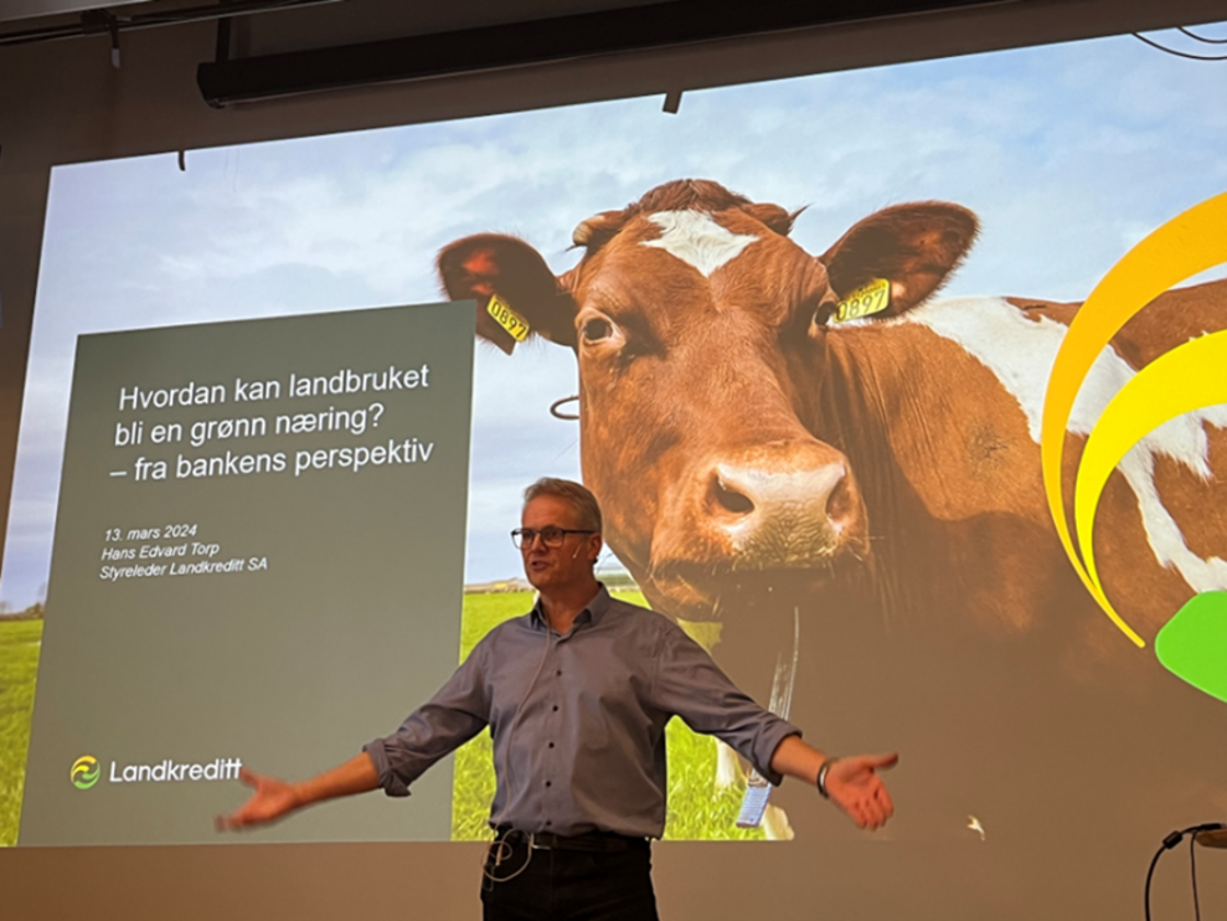 På dag to holdt styreleder i Landkreditt SA Hans Edvart Torp innlegg om hvorfor banker er opptatt av bærekraft og hvordan landbruket kan bli en grønn næring.