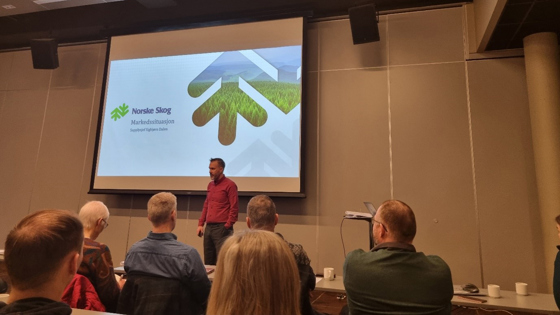 På dag to fikk vi blant annet et interessant innlegg om markedssituasjonen til papirindustrien i Trøndelag og Europa. Situasjonen er svært utfordrende for papirindustrien, med høye tømmerpriser og lave papirpriser som gjør at lønnsomheten er dårlig for øyeblikket, og det er overkapasitet på papirproduksjon i Europa. Som på mange andre samfunnsområder, så skjer markedsendringene i papirindustrien mye raskere enn tidligere, og markedet er så tett knytta sammen at endringer hos en produsent sprer seg som ringer i vann til hele Europa. Et annet høydepunkt var foredraget til Cathrine Enoksen fra Namdal skognettverk. Hun fortalte om resultatene fra droneprosjektet de har gjennomført, hvor de har brukt droner og kunstig intelligens til å kartlegge ungskogpleiebehov hos private skogeiere. Per nå er de to algoritmene de har testet ikke gode nok til å gi et nøyaktig treantall, men droner gir likevel et unikt overblikk over områder som trenger ungskogpleie. Skogeierne var også stort sett fornøyd med gjennomgangen, og flertallet svarte at de planlegger å gjennomføre ungskogpleie som følge av prosjektet. Vær og årstid under dronefotograferingen var svært avgjørende for presisjonen. Solfylte sommerdager var helt uegna, mens overskya høstdager ga best resultat.