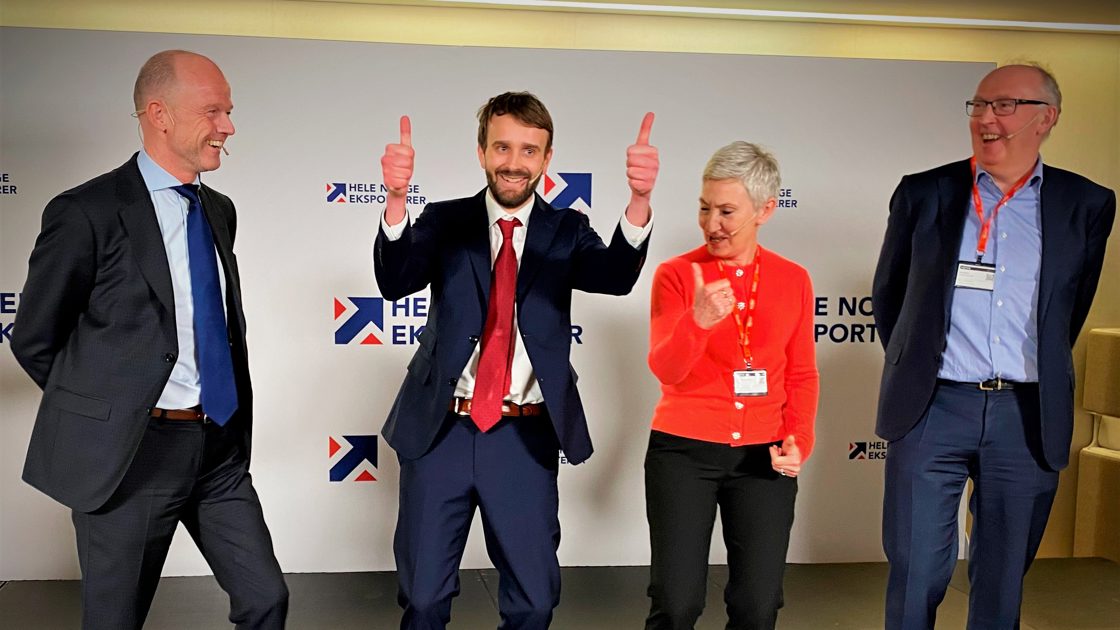Regjeringens mål er å øke norsk eksport utenom olje og gass med 50 produsent innen 2030. Derfor la vi i mars frem eksportreformen «Hele Norge eksporterer». Gjennom et offentlig-privat samarbeid skal vi løfte frem 5-10 nasjonale, strategiske eksportsatsninger. Først ut er havvind der vi har mål om 10 % av det globale markedet frem mot 2030. Vi har styrket eksportgarantiordningene og etablerer en ordning der små og mellomstore bedrifter kan få dekket inntil 50 % av kostnadene for enkelte eksportfremstøt.