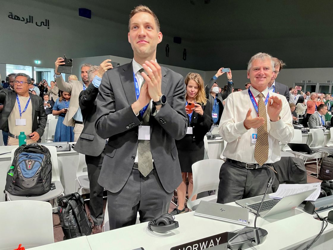 – For første gang er verdens land enige om at energisystemene skal bort fra fossile brensler, inkludert olje og gass. Dette er et gjennombrudd, og setter en klar retning for alle land. vi skal fra den fossile verden og over til den fornybare, sier klima- og miljøminister Andreas Bjelland Eriksen, som deltok i forhandlingene i Dubai