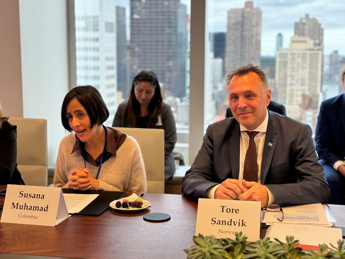 Sammen med Colombias miljøminister ledet klima- og miljøminister Tore. O. Sandvik et dialogmøte med næringslivet og urfolk 24. september under Climate Week, som pågår parallelt med FNs generalforsamling i New York.